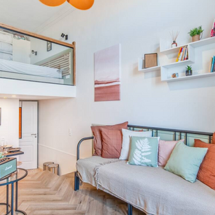 un bel espace de vie avec un canapé-lit pour deux personnes,