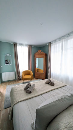 >Une Chambre : Une grande chambre avec un lit double (180x200) et un accès direct à un balcon privé. Parfait pour se réveiller avec un petit café/thé et la brise marine