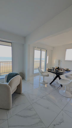 Un grand balcon filant face à la mer les pieds dans l'eau